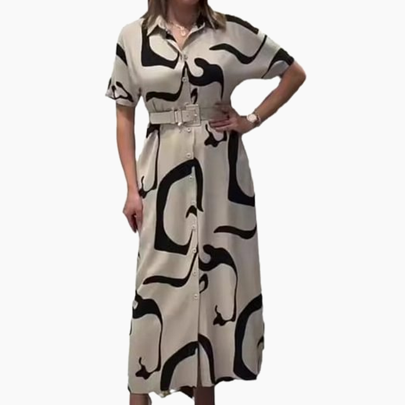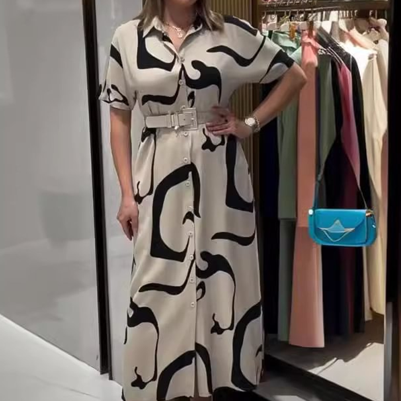 Γυναικείο μακρύ φόρεμα με κοντό μανίκι και στάμπα-GR
