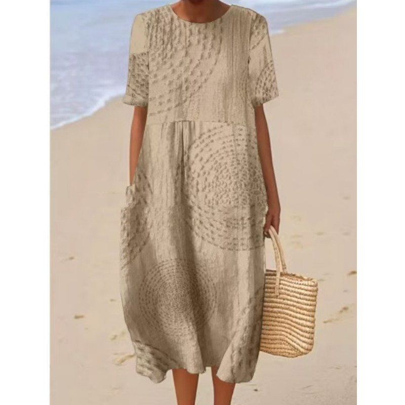 ΧΑΛΑΡΗ ΕΦΑΡΜΟΓΗ: Σχεδιασμένο με γνώμονα την άνεση, αυτό το μίντι φόρεμα έχει χαλαρή εφαρμογή που επιτρέπει την εύκολη κίνηση και την αναπνοή, καθιστώντας το ιδανικό για καθημερινή χρήση.