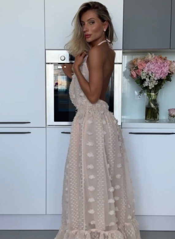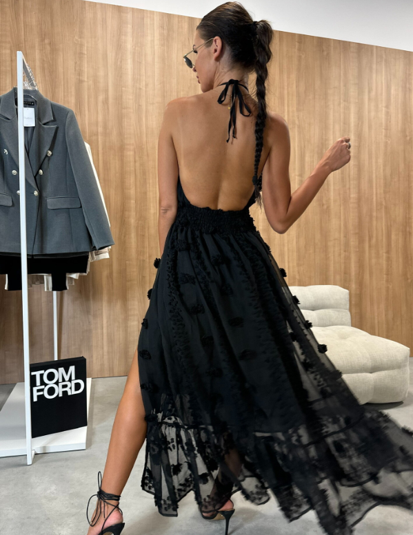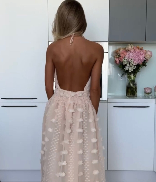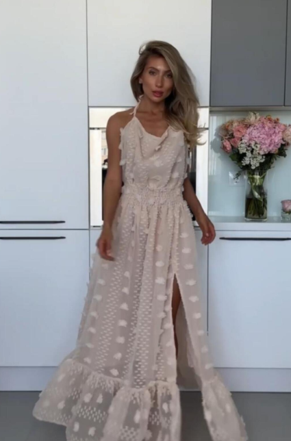 Vasarinė moteriška madinga suknelė su atvira nugara ir dideliu skeltuku-LT