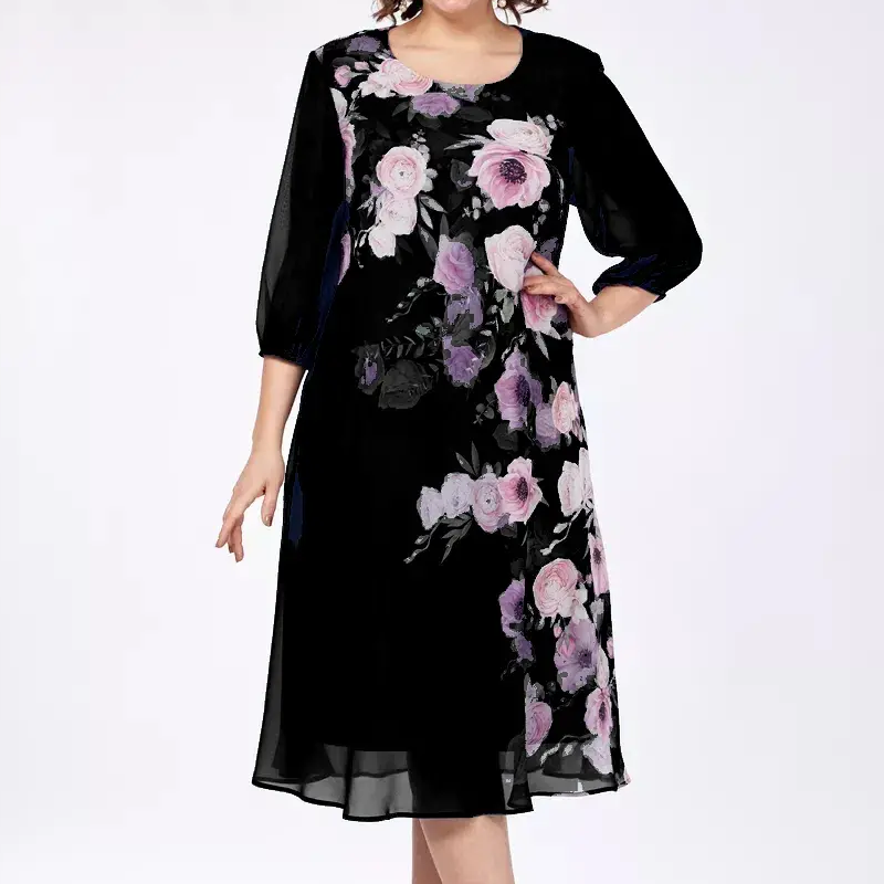 Η συσκευασία περιλαμβάνει: 1* Κομψό γυναικείο φόρεμα με στρογγυλή λαιμόκοψη και φλοράλ σχέδια