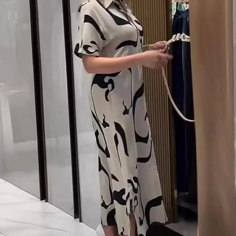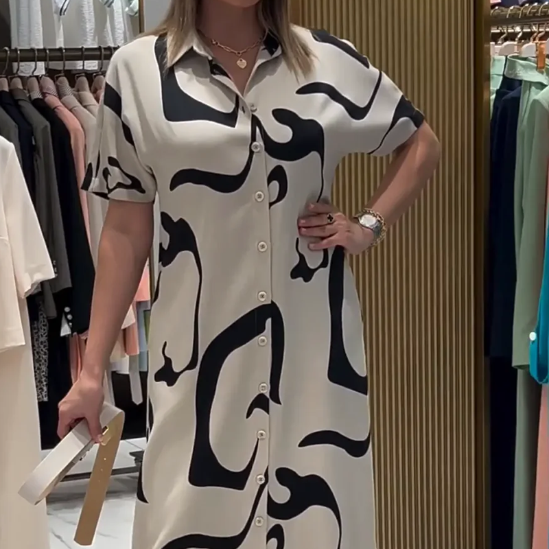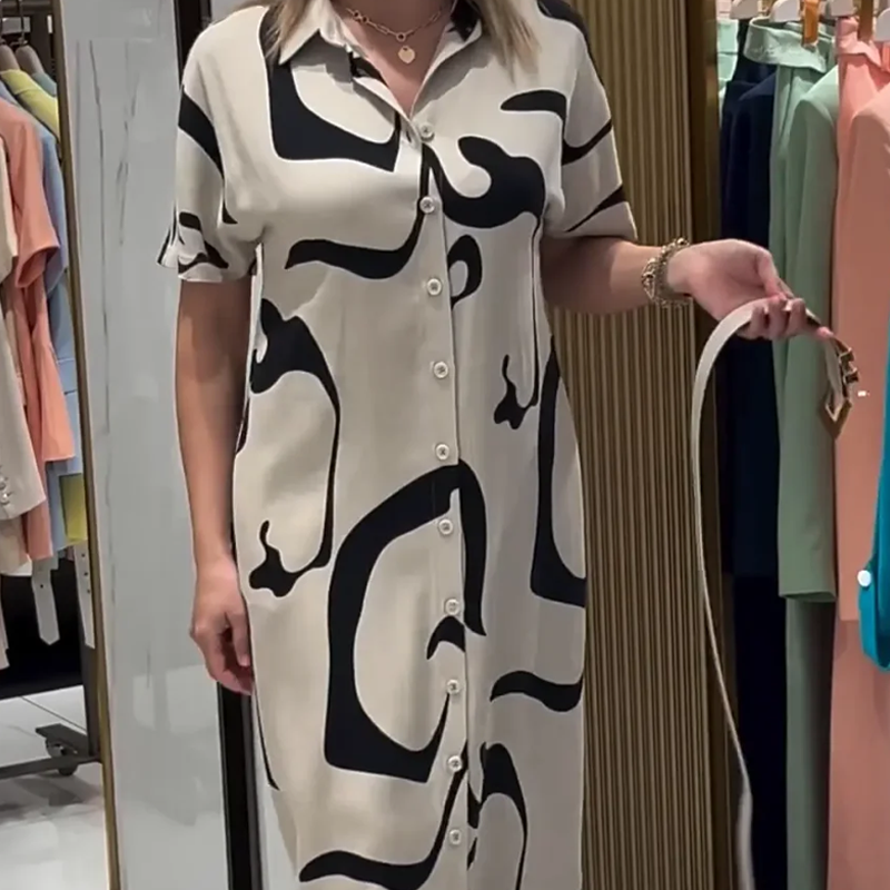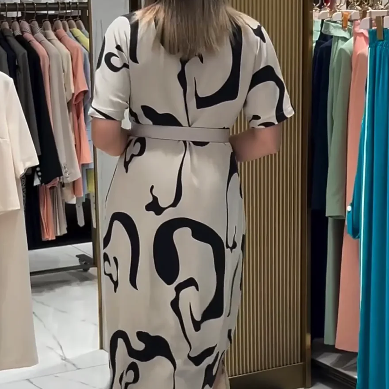 Ženska potiskana obleka s kratkimi rokavi-SI