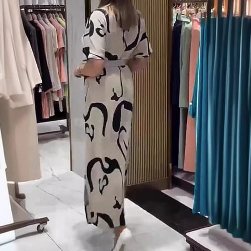 KRAJŠA DOLŽINA GRACE - Padajoča maksi obleka izžareva gracioznost in vsestranskost ter je primerna za različne tipe postav. Ne glede na to, ali se oblečete za dogodek ali pa ste ležerni, dolžina obleke ponuja brezčasno privlačnost. Njen draperija zagotavlja laskavo prileganje, hkrati pa omogoča svobodo gibanja.