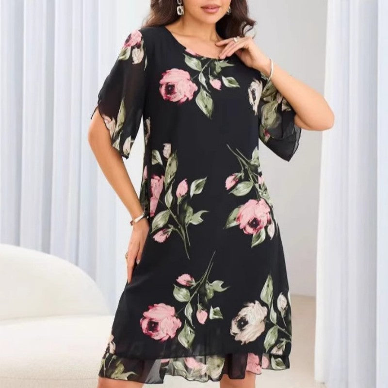 Ženska obleka s cvetličnim potiskom-SI
