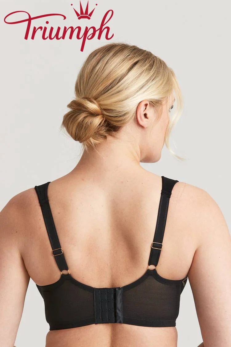 Αυτή η φανταστική πλάτη διαθέτει κατασκευή διπλής στρώσης που στηρίζει τα χέρια και επιτρέπει την ελευθερία κινήσεων. Η φαρδιά ζώνη κάτω από το στήθος παρέχει εξαιρετική στήριξη και άνεση, συμπιέζοντας τις μασχάλες και την πλάτη, μειώνοντας το πρήξιμο του σουτιέν.