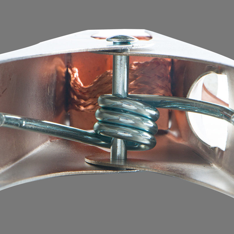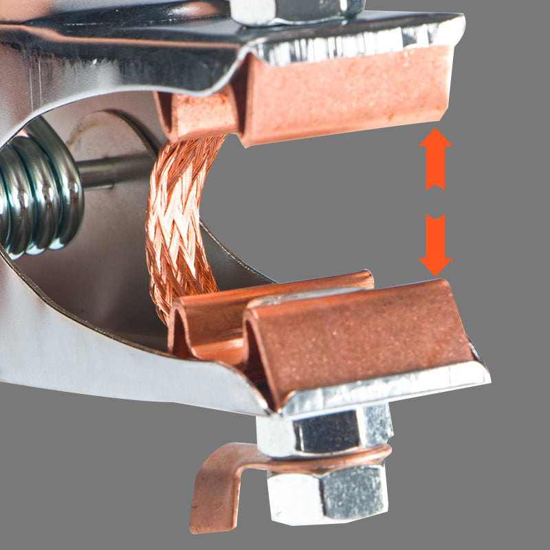 DIDELIS PROCENTAS, MAŽAS ŠILUMOS GENERAVIMAS: Spaustukas sukurtas taip, kad efektyviai praleistų srovę ir generuotų minimalų šilumos kiekį. Tai užtikrina stabilų ir saugų įžeminimą suvirinimo metu, apsaugo nuo perkaitimo ir pagerina suvirinimo aparato našumą.