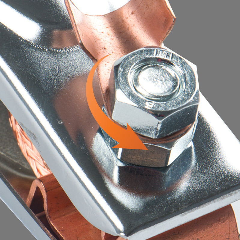 ILGALAIKĖS LAIDOS: Spaustukas su didelio tempimo jungtimis užtikrina tvirtą ir stabilų sujungimą. Šios jungtys atlaiko intensyvų naudojimą, užtikrina pastovų elektros perdavimą ir yra patvarios didelės srovės aplinkoje.