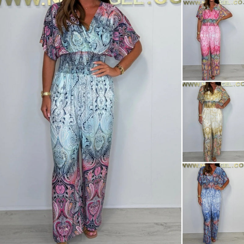 💃Moteriškas madingas laisvas trumpomis rankovėmis plačių kojų kombinezonas-LT