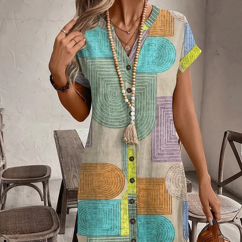 🌺【S-2XL】Spalvinga marginta suknelė-LT
