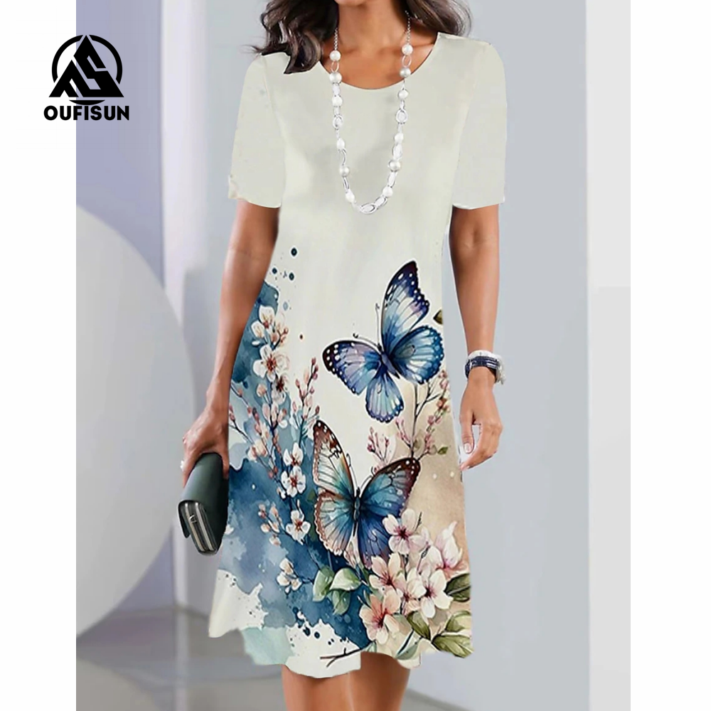 Μόδα φλοράλ στάμπα με κοντό μανίκι μάξι φορέματα πεταλούδα λουλουδάτο μακρύ φόρεμα-GR