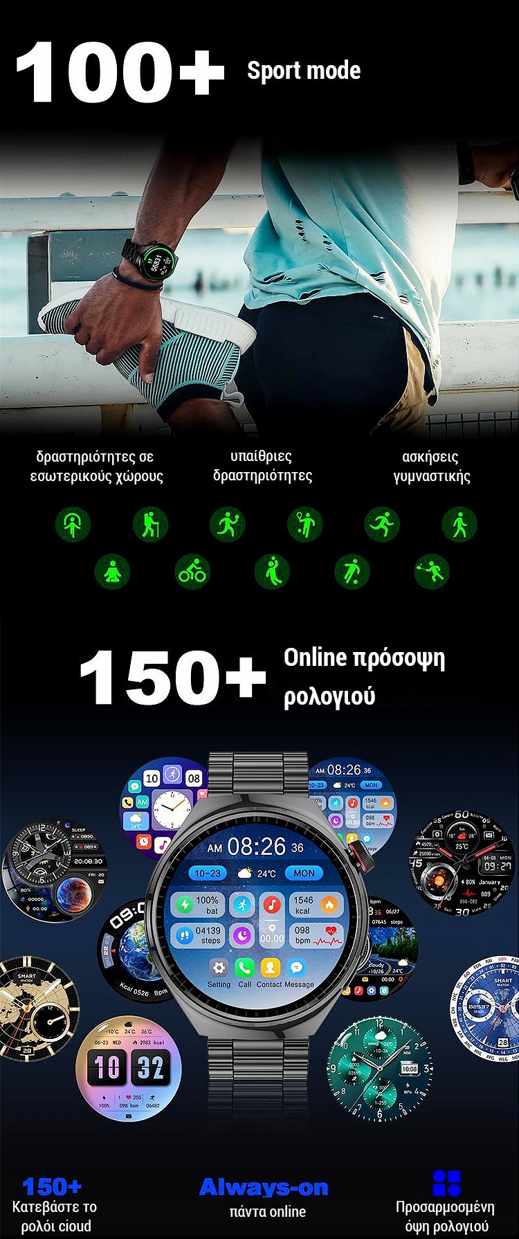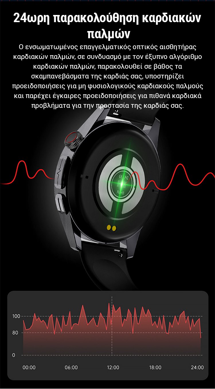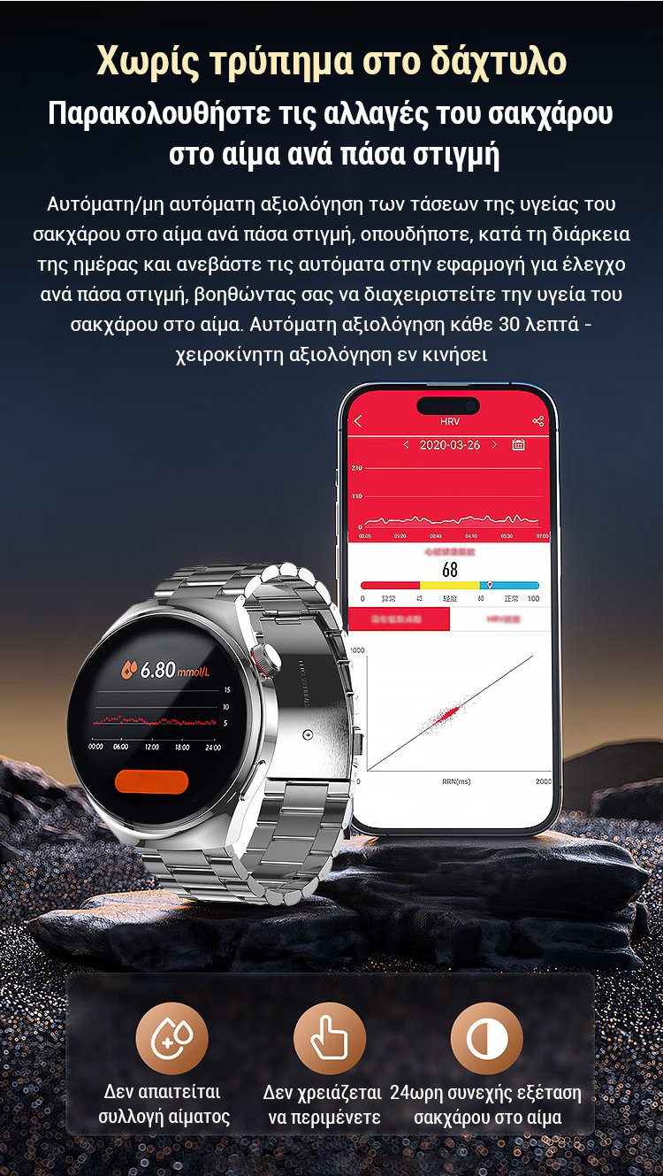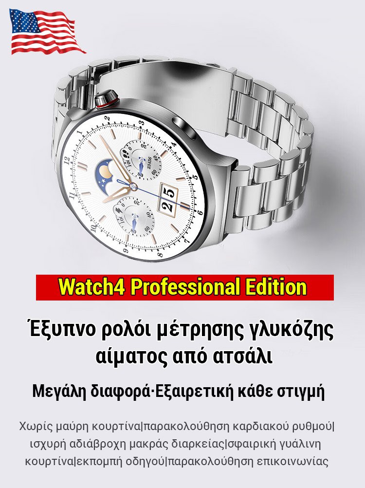 Ατσάλινο λουράκι ρολογιού Watch4 Pro με μέτρηση σακχάρου στο αίμα