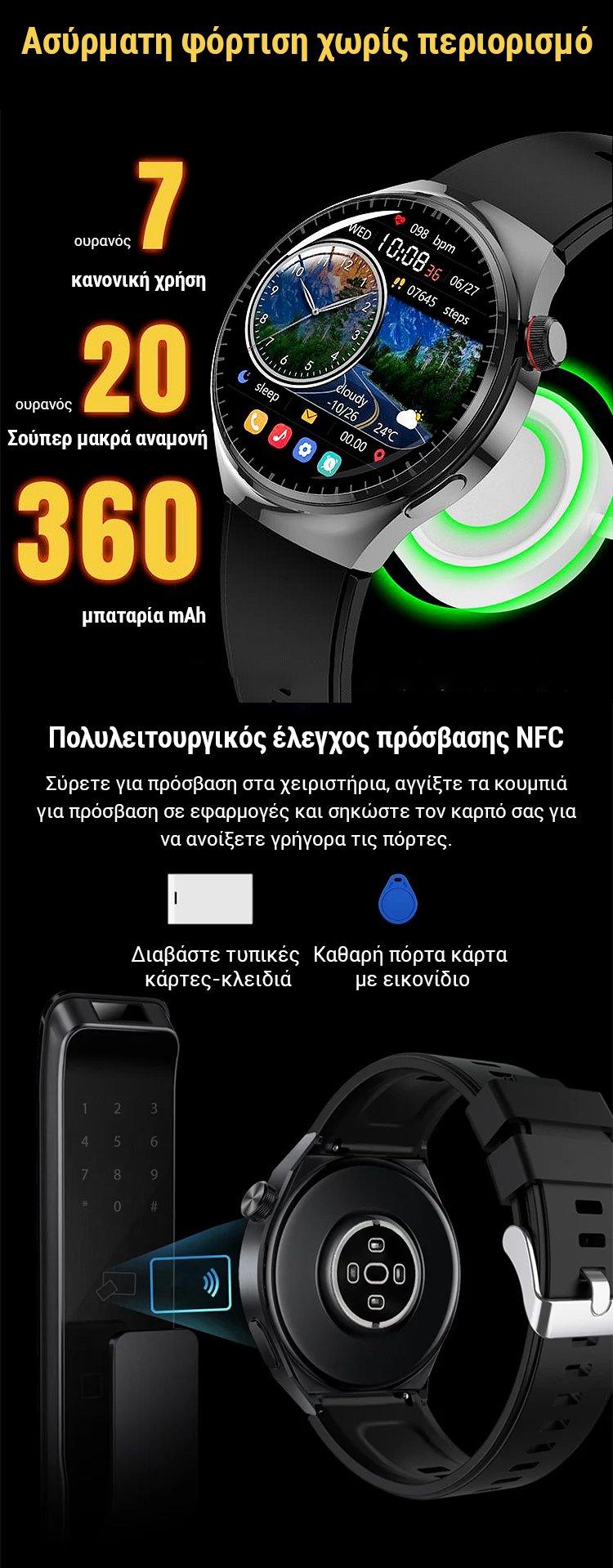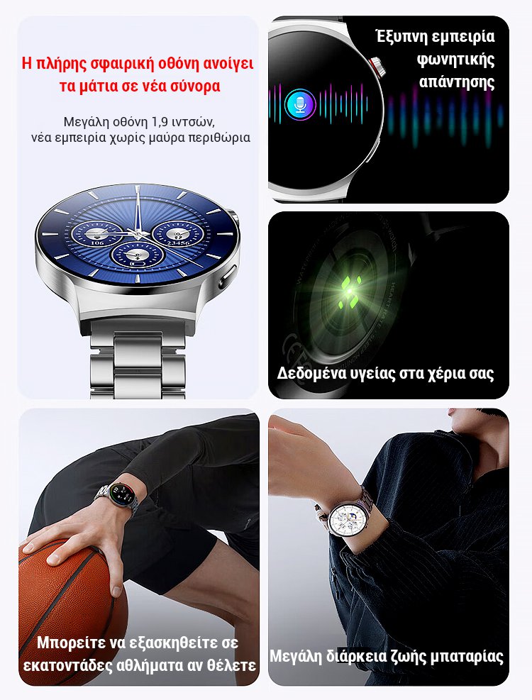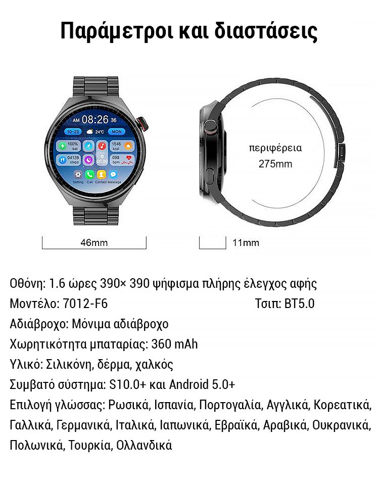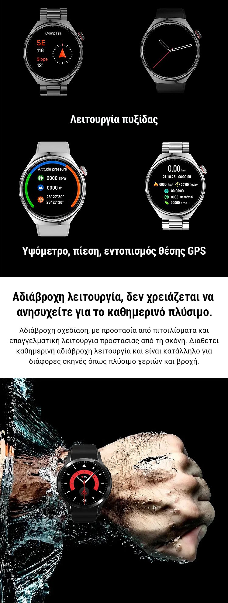 Ατσάλινο λουράκι ρολογιού Watch4 Pro με μέτρηση σακχάρου στο αίμα