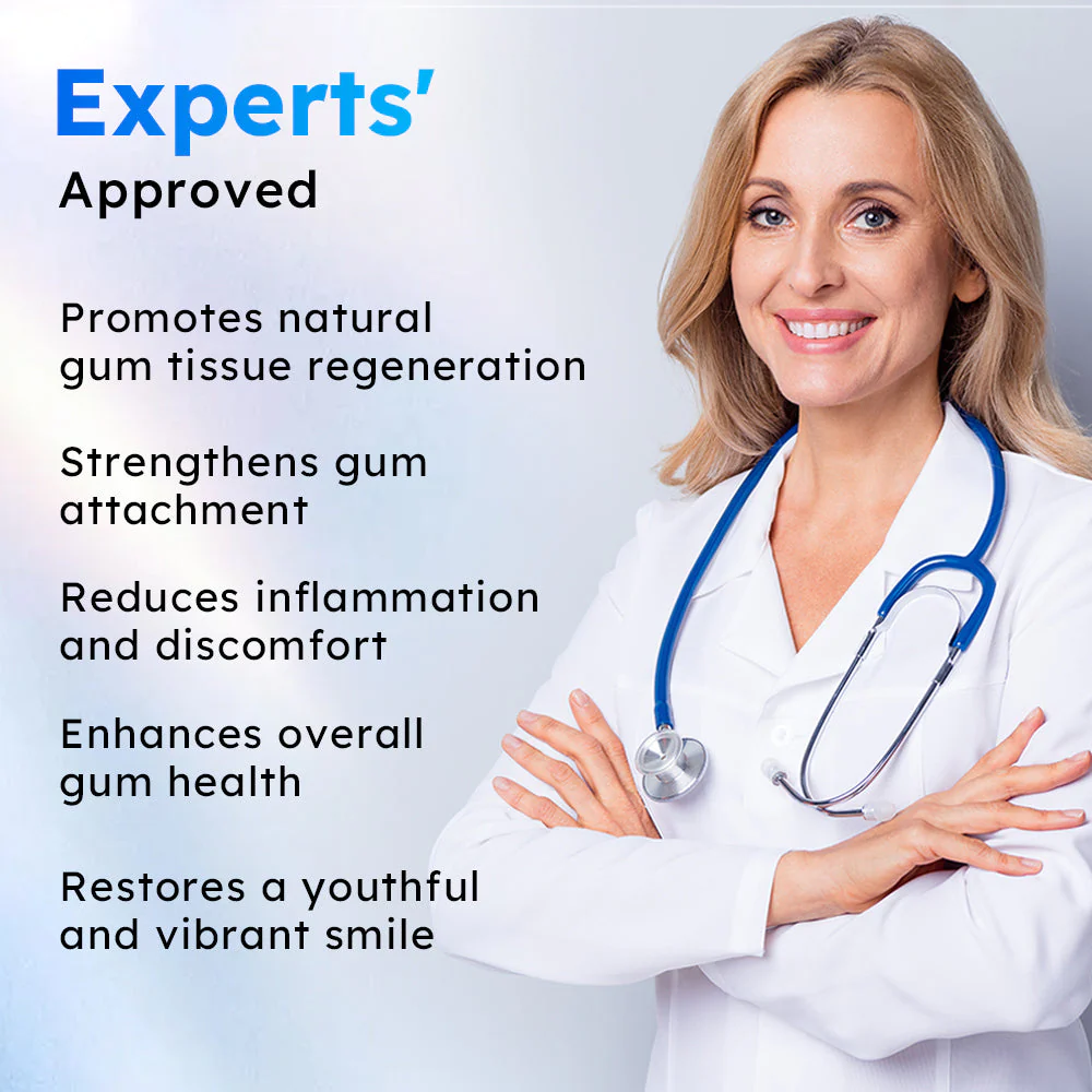 Kofermentas Q10 : žinomas dėl savo antioksidacinių savybių, kofermentas Q10 padeda sumažinti uždegimą ir skatina dantenų gijimą. Jis palaiko natūralius organizmo atstatymo mechanizmus, taip prisidedant prie dantenų atjauninimo.