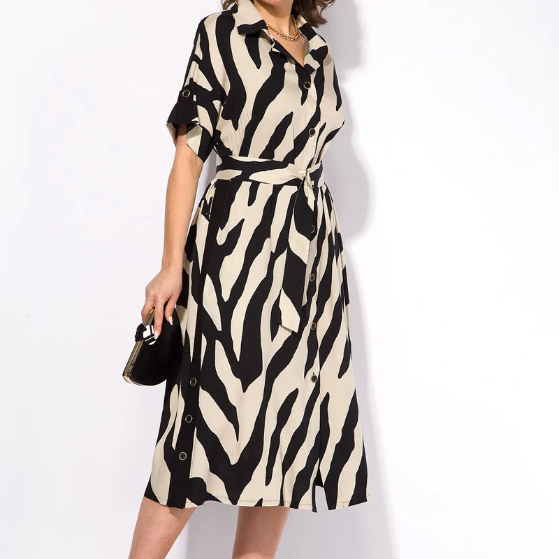 ✨🦓Φόρεμα με V λαιμόκοψη, τυπωμένες ρίγες και μέση-GR