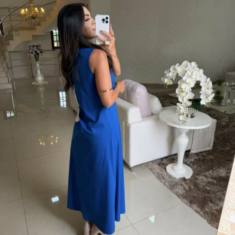 BERANKOVIS APVALIOS APYKALĖS DIZAINAS – klasikinė apvali iškirptė ir berankovis siluetas suteikia modernumo ir gali būti lengvai derinami su aksesuarais, švarkais ar megztiniais, kad būtų universalu kasdien.