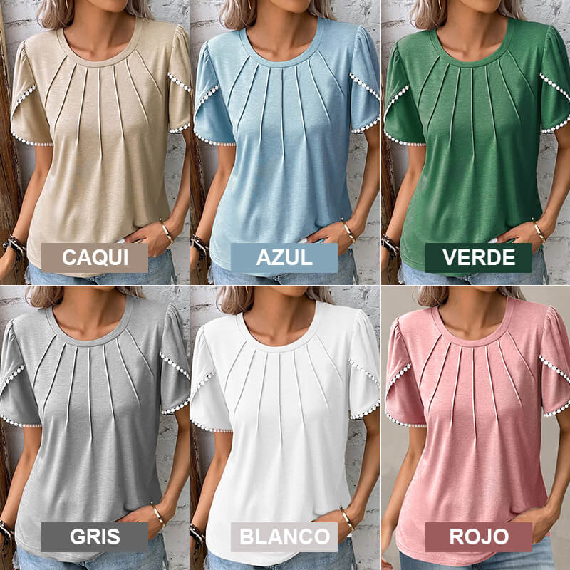 🔥Nauji moteriški laisvalaikio stiliaus vienspalviai nėriniuoti marškinėliai apvaliu kaklu-LT