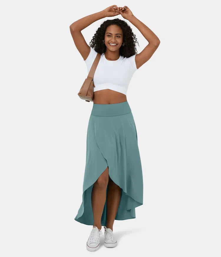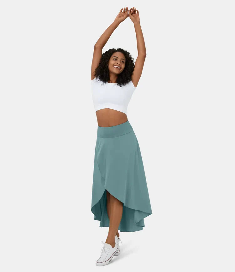 Krilo 2 v 1, hitro sušeče, ležerno, midi z visokim pasom in nizkim naborkom - GR