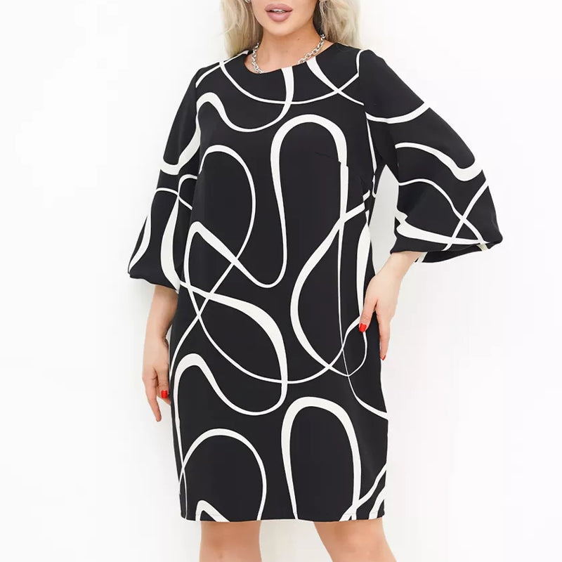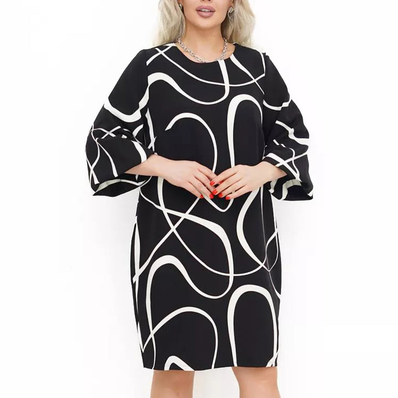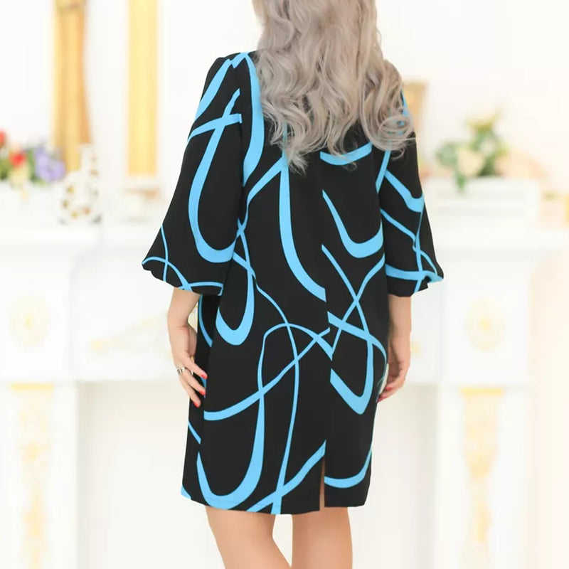 🌸 Raštuota obleka arvalia iškirpte ir septuų ketvirčių rankovėmis-LT