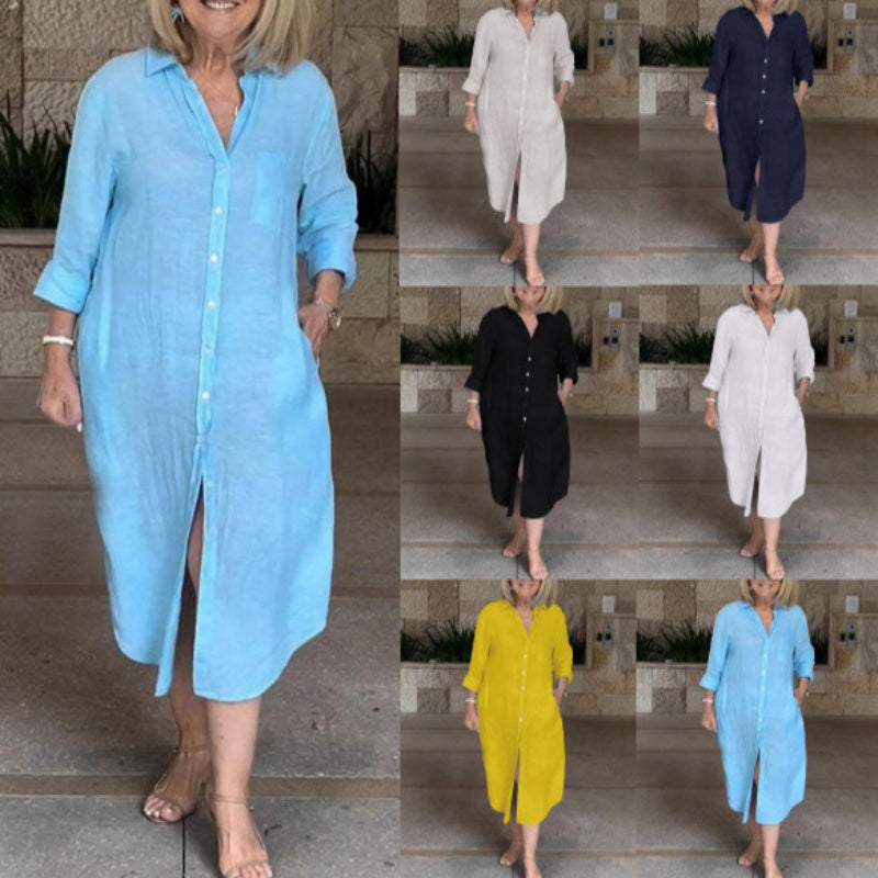 🔥 Laisva medvilninė lanena obleka za ženske-LT